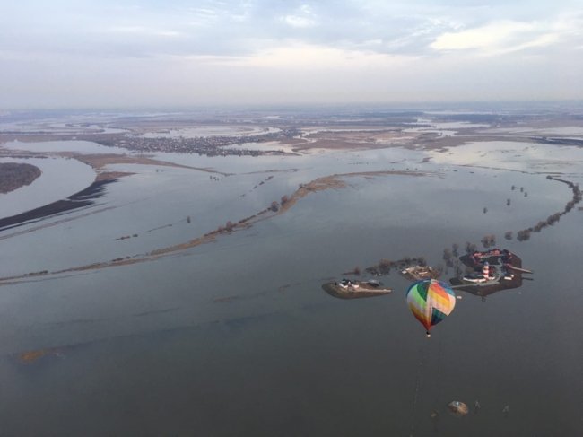 Рязанец Евгений Рыбаков опубликовал фотографии разлива Оки с воздушного шара на своей личной странице в социальной сети.
