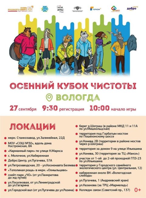 Регистрация на «Осенний кубок чистоты» проходит в Вологде (0+) - «Новости»
