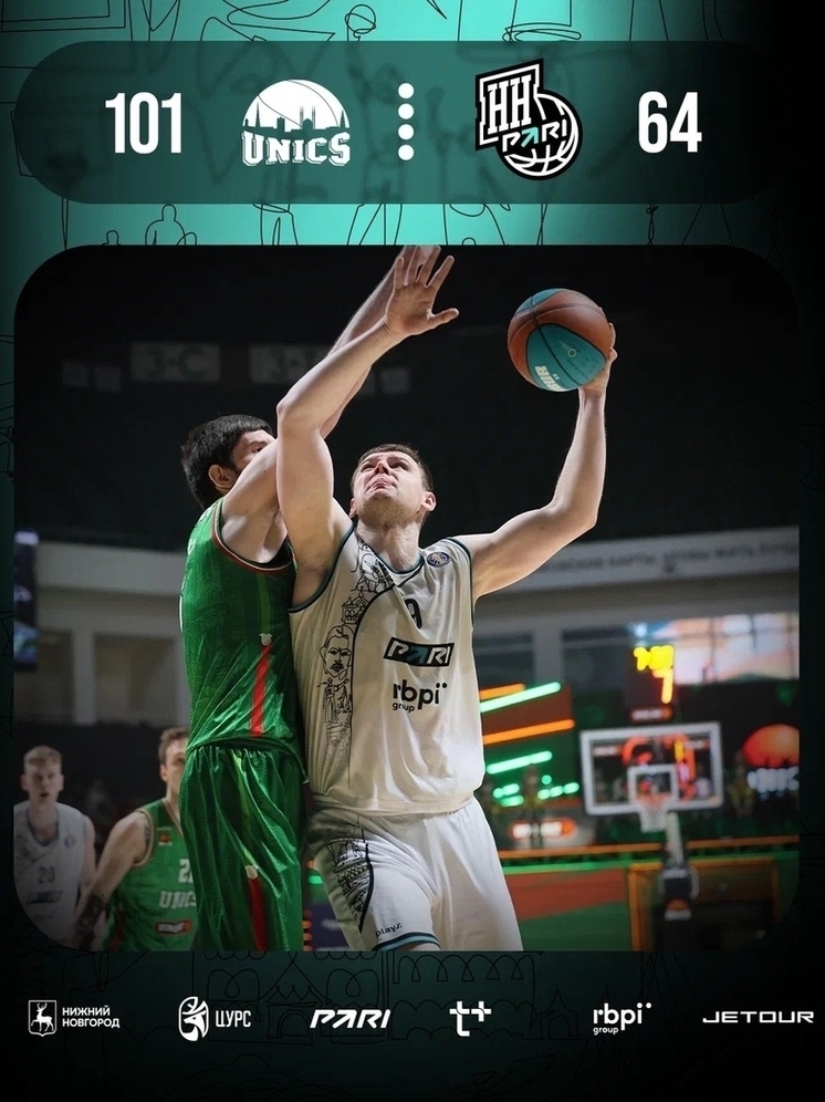 В последнем матче регулярного чемпионата Единой Лиги ВТБ баскетболисты «Пари НН» крупно уступили УНИКСу в Казани — 64:101.
