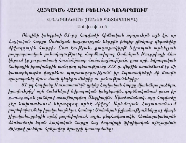 Армянский вопрос на Берлинском конгрессе