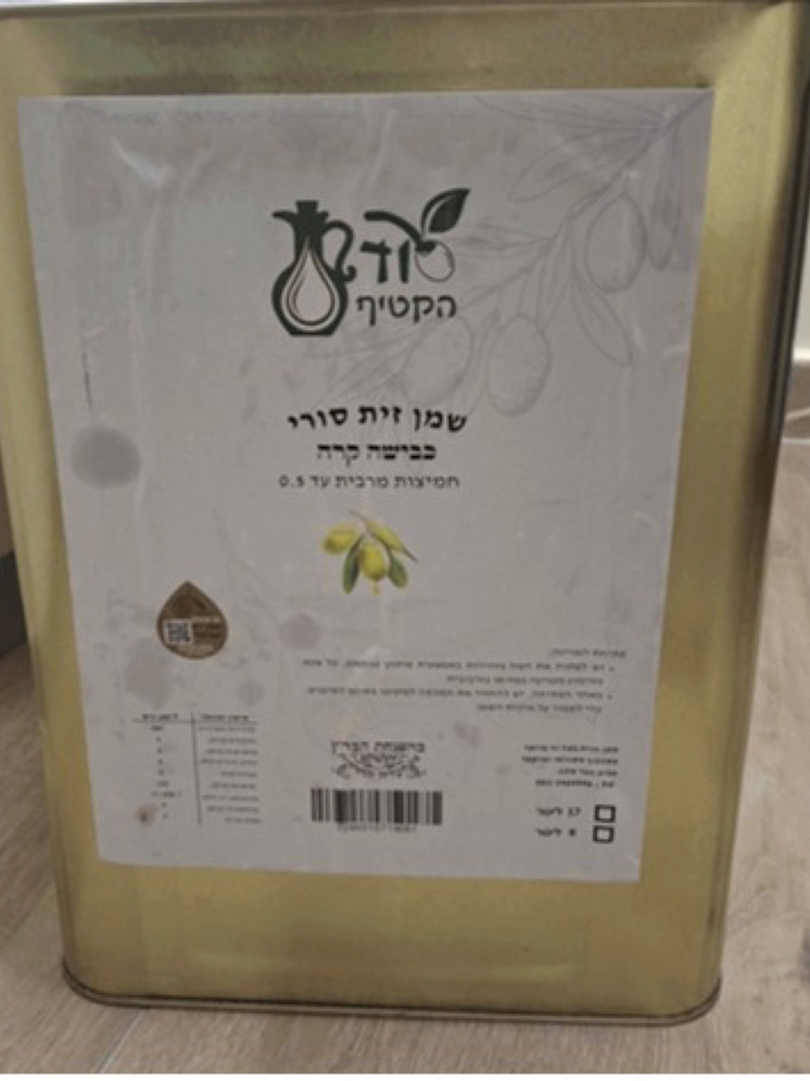 Лабораторные исследования показали, что состав жирных кислот в продукте не соответствует требованиям, предъявляемым к оливковому маслу, несмотря на информацию, указанную на этикетке. Кроме того, производитель данного продукта не зарегистрирован в Министерстве здравоохранения. Таким образом, речь идёт о фальсифицированном продукте, который не соответствует израильскому стандарту для оливкового масла.
