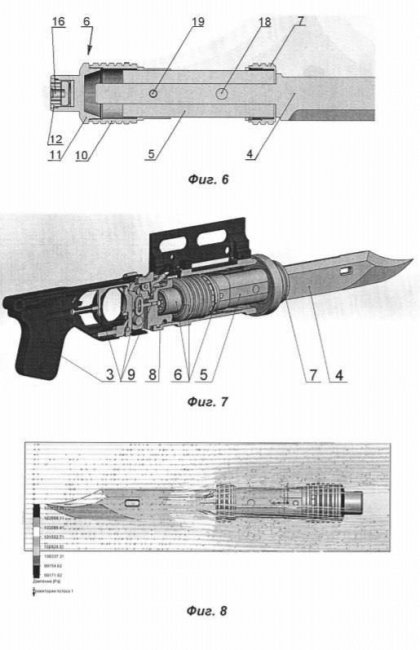 Авторы — некие самоучки с удивительно неподозрительными фамилиями Васильев и Смирнов. Они скрестили обычный штык-нож от АКМ и гранату от подствольного гранатомёта ГП-25. Всю эту конструкцию надо зарядить в подствольник — и вперёд. Можно пользоваться и как обычным штыком, и — в случае чего — выстрелить им во врага и интервента на 400 метров.