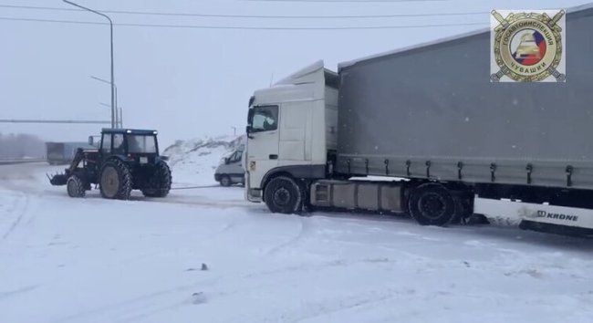 Экипаж спецбатальона ДПС поблагодарил тракториста, который не оставил в беде водителя фуры, застрявшей при съезде с трассы.