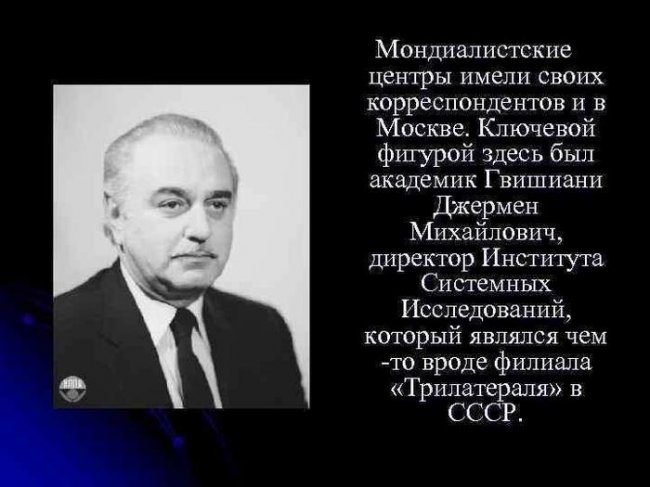 но его зять Д. Гвишиани, продолжал руководить ВНИИСИ, и в 1980 г. в этот филиал при Римском клубе (масонский клуб) был принят на работу будущий «молодой реформатор» Е. Гайдар.