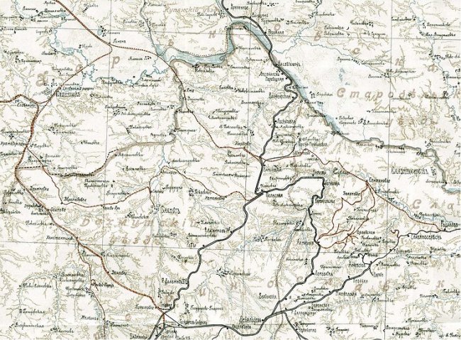 Фрагмент карты 1912 года с указанием участков Родаково – Лиман, Лиман – Славянск – Краматорская и пр.