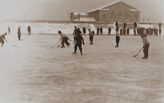 Купив билет и взяв на прокат коньки, жаждущий зимних развлечений попадал в чашу стадиона, где были залиты беговые дорожки: