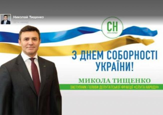 Нардеп от «Слуги народа» Николай Тищенко в поздравлении украинцев с Днем соборности упомянул только часть её территории «от Киева до Закарпатья».