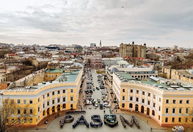 В Одессе согнали курсантов Одесской военной академии и Одесского государственного университета внутренних дел и выстроили в слово «Разом» («Вместе»).