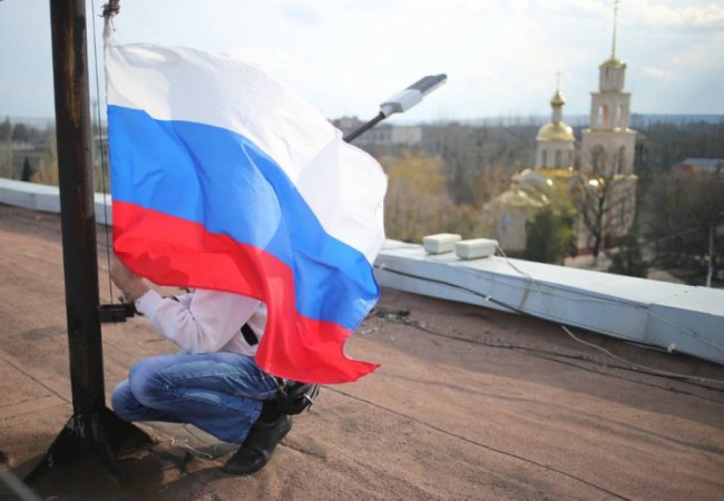 Славянск. Водружение флага России над зданием городской администрации. Фото © ТАСС / Михаил Почуев