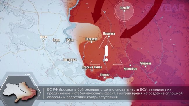 После взятия в предыдущие дни Оскола и Рубцов, ВСУ продвигаются в направлении Макеевки с целью окружить российскую группировку в Лимане с севера и выйти к Кременной в ЛНР, проинформировал телеграм-канал «Рыбaрь».