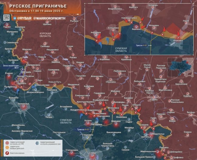 Наступление ВС России, пусть и медленное, но продолжается. Здесь войска уже подошли к холмистым лесам в районе Малой Корчаковки. А еще нам, для выстраивания нашей логистики, крайне важно занять «треугольник» Могрица — Велика Рыбица — Мирополье.